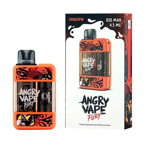 ANGRY VAPE FURY – первая электронная сигарета, выпущенная под брендом ANGRY VAPE в коллаборации с компанией Aspire. Это POD-система с перезаправляемым картриджем, встроенным испарительным элементом и регулируемой затяжкой.