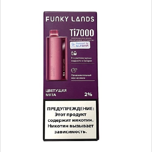 Одноразовые электронные сигареты FUNKY LANDS Ti 7000 со вкусом Мяты – новинка от бренда FUNKY LANDS. Аккумулятор емкостью на 600 mAh с возможностью подзарядки через разъем USB Type-C и бак с 17 мл предзаправленной жидкости (Солевой никотин крепостью 2% (20 мг/мл)) позволяют совершить до 7000 затяжек
